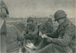 The early morning of the 13th was extremely cold, and the snow which had fallen intermittently for three days, was glazed and deceivingly deep. The troops had spent a miserable night. They were thoroughly wet and chilled by the cold sweat of anticipation. Every man was tense and excited; most were afraid, yet unwilling to show it. There were tears, unnatural laughter, and prayer. Weapons were checked and rechecked automatically. Feet were already half frozen, (there were never enough overshoes or arctics to go around) and fingers were brittle. It was only two months later that infantry troops were