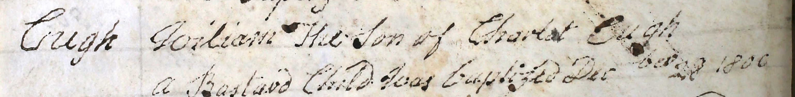 Firstly was the baptism of a William Cugh in Pewsey in late December 1800, the “bastard child” of “Charlot Cugh”.