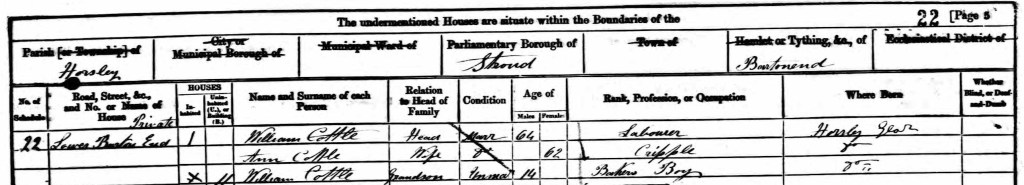 By 1861, William is living with his Cottle grandparents in Lower Barton End, Horsley.