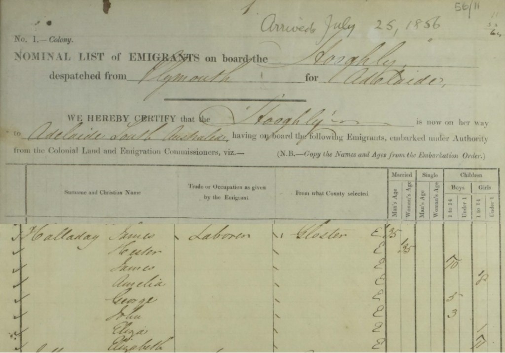 But let’s return to James and Hester and their voyage to Australia in 1856.