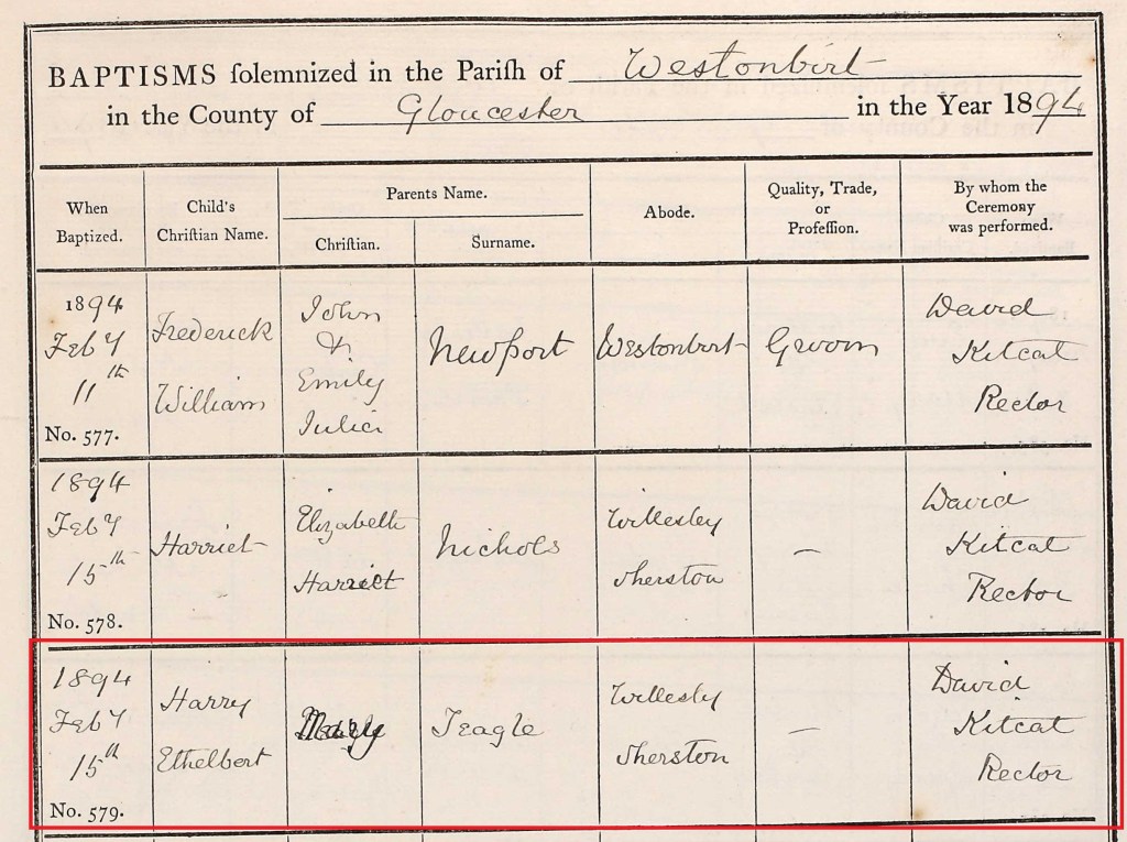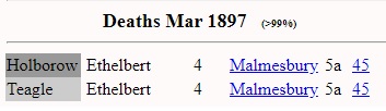 There are no Ethelbert Teagle births c. 4 years prior to this burial, so I am happy to accept that this is little Harry. However, when searching for his death registration on FreeBMD another surprise: