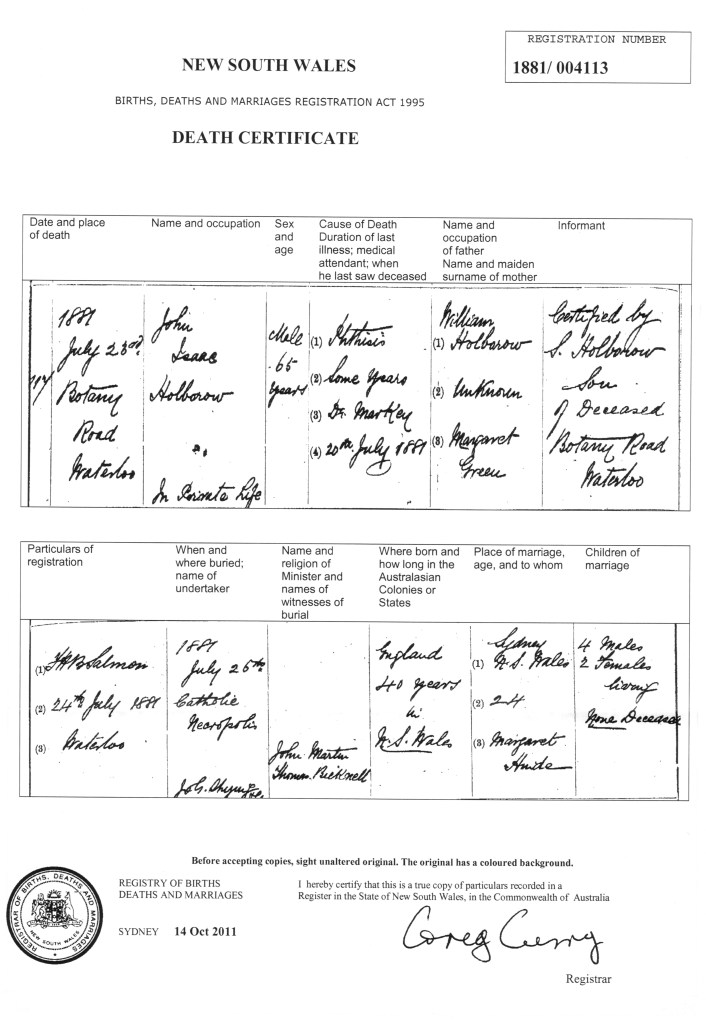 From basic research I believe this chap to be a long gone g g (g) grandfather. Funny he married a Cantwell in 1844 and in 1969 I married a Cantwell. From the above post I take it he was a free settler not a convict, not that I would have any problems if that was the case, my granddad was John Isaac Holborow, dod 1952. Anecdotal evidence seems to indicate he is a. Relative. Anything else be please to know.
