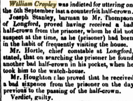In 1843 he was granted his certificate of freedom, which was short-lived. After being released, he would be tried again at the Quarter Sessions in Launceston on 25 September 1845 for “uttering base coin” in payment at a bar in Longford and was sentenced to another year of hard labour at Bridgewater. (Sidenote: whilst waiting to be ‘removed’ to his punishment, William was locked up with James Kimber – referred to as “the dog’s flesh man” as he had been found guilty of fraudulently selling dog meat to various butchers.)