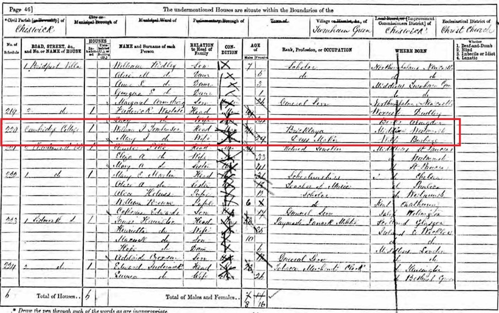 In the 1871 census, they are living in Chiswick and Mary is still utilising her dressmaking skills to supplement their income.