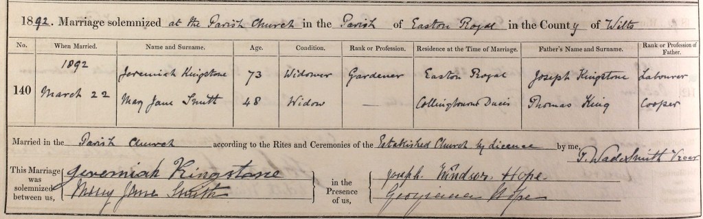Unperturbed, Mary Jane threw herself yet again onto the jagged rocks of matrimony. In March 1892 she married Husband No. 4, another widower, Jeremiah Kingstone. He was – as Henry had been – over 20 years her senior.