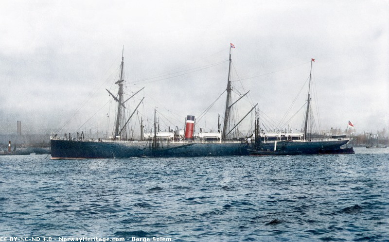 SS St. Paul photographed under steam in or near New York Harbour 1895
