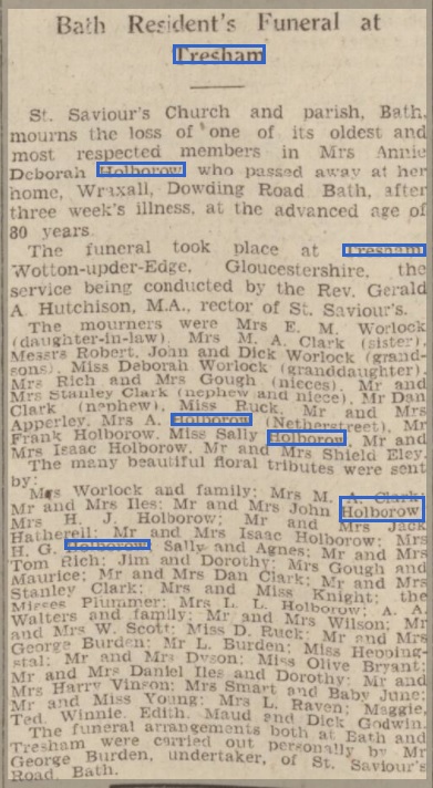 I have been intrigued by these lives for some time now, and its fascinating what can be found when you aren’t really looking. Our family histories are more than just our direct ancestors – its all the myriad lives weaving together throughout both time and space. There are various Holborow families in Tresham, Sherston and the surrounding villages and I can’t imagine that they weren’t aware they were connected (after all, Holborow is not and never has been a common surname, even if the areas it was concentrated). And if it weren’t for me misreading a record and getting confused, I never would have found that Daniel and Catherine and their family were there to be remembered.