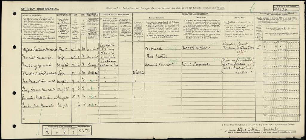In 1921 the Hurcombe family is still living in Gloucestershire, Alfred in the employ of A E Holborow of Burden Court Farm (A E being Anne Eliza, Daniel/Dick’s mother).