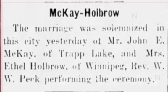The 1916 census records Ethel and George as living in the rural municipality of Minto, Manitoba, Canada where Ethel is a housekeeper. No George Senior in sight. In November 1918, they moved to Winnipeg, Manitoba, and then to British Columbia, where Ethel marries for a second time: to John Edward McKay. What had happened to George?