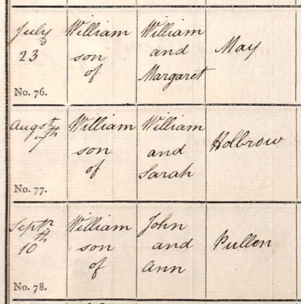 Needless to say there are no potential Thomas Holbrow’s baptised in Castle Combe, West Kington or Wotton-under-Edge, nor their neighbouring parishes.